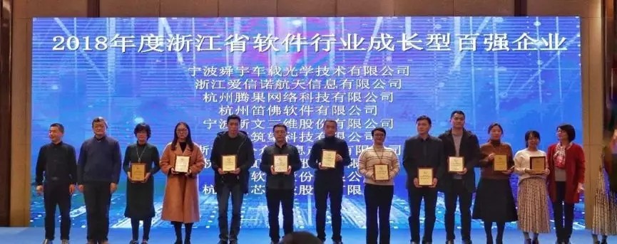 【合作伙伴】創業軟件榮獲2018年度浙江省軟件行業成長型百強企業