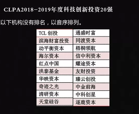 CLPA2018-2019年度科技創(chuàng)新投資20強