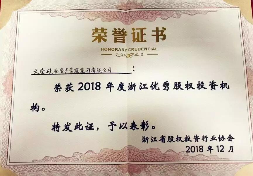 12月20日,2018年度會員大會暨“攜手譜新篇”浙江股權投資行業(yè)高峰論壇在新僑飯店隆重舉行。天堂硅谷憑借2018年在投資領域的優(yōu)異成績,以及對助力實體經(jīng)濟發(fā)展做出的貢獻榮膺優(yōu)秀投資機構榮譽稱號。